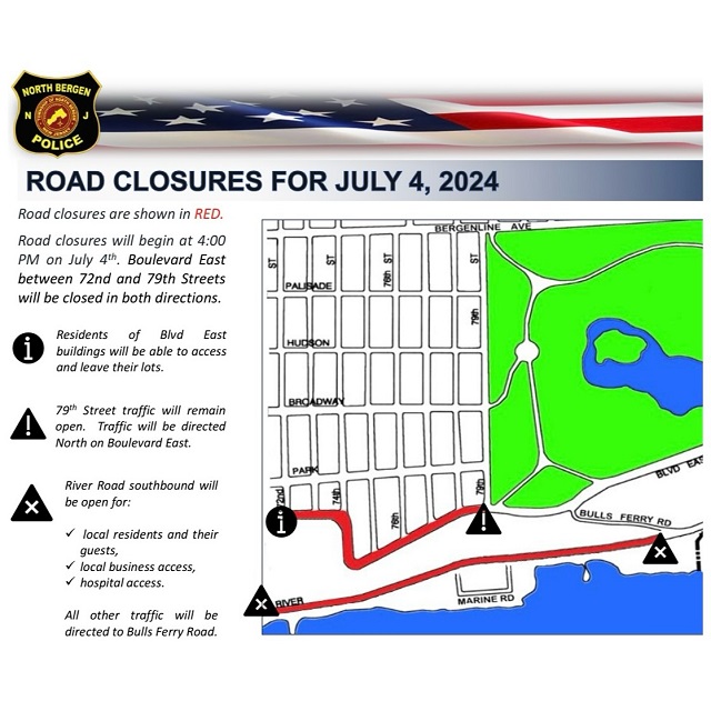 July 01, 2024On Thursday July 4, 2024, the Macy’s Fourth of July Fireworks will be held on the Hudson River for the first time in 11 years. The fireworks are expected to begin about 9:25 p.m. Due to the anticipated large turnout, the following traffic & parking regulations will be in place: