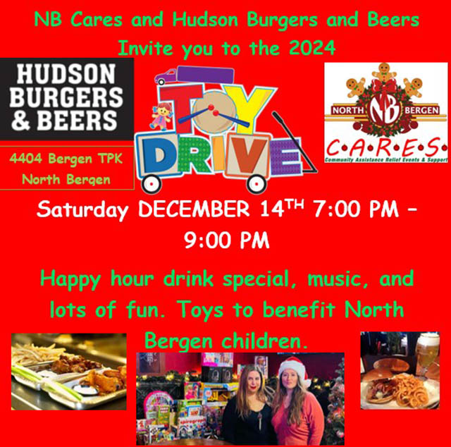 December 12, 2024NB C.A.R.E.S. and Hudson Burgers & Beers invite everyone to the 2024 Happy Hour Toy Drive from 7 to 10 p.m. on Saturday, Dec. 14, 2024.