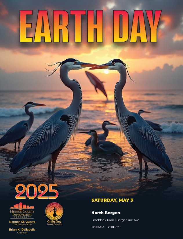 April 30, 2025Everyone is invited to attend a free Earth Day event in North Bergen from 11 to 3 p.m. on Saturday, May 3 at the Veterans Memorial in Braddock Park near 91st Street and Bergenline Avenue.