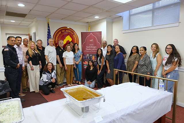 July 18, 2025In celebration of 25 years of partnership with the Township of North Bergen, the BAPS Shri Swaminarayan Mandir (Hindu temple) hosted a special luncheon at Town Hall. Volunteers from the Mandir generously prepared and served the meal, bringing their spirit of service and gratitude to the community.