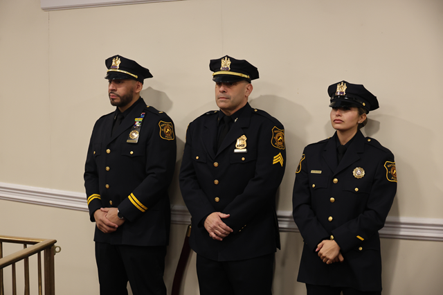 Also in attendance were Commissioners Hugo Cabrera, Claudia Rodriguez, and Anthony Vainieri; County Commissioner Robert Baselice; Deputy Chief Jimmy White of the Weehawken Police Department; Chief Frank Pelez of the Guttenberg Police Department; Captain Archer Cuellar of the Union City Police Department; Chief Yakup Zoklu of the Cliffside Park Police Department; and Regional SWAT Team Commander Carlos Clavijo, along with members of the North Bergen Police Department, township officials, and the officers’ families.