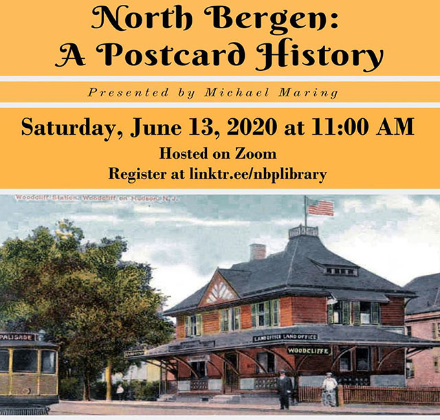 Township historian Michael Maring will host this event on Zoom, presenting a showcase of North Bergen’s fascinating history through early 20th century postcards.