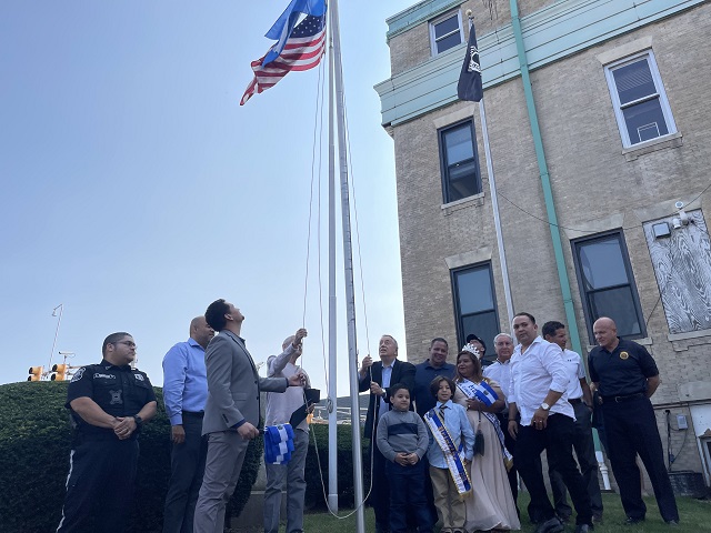 To officially launch the month, the mayor and commissioners raised the Salvadorian flag over Town Hall on Friday, Sept. 16. The event began with NBHS Student Nicholas Gamboa singing the National Anthem, followed by a saxophone performance of the Salvadorian National Anthem by Erick Manuel Gudiel Folgar. Six-year-old Marco Andre Gudiel Cardoza gave the Salvadorian Oath, along with a speech made by New Jersey Ambassador of El Salvador Ariel Valle. Revenue & Finance Commissioner Julio Marenco received recognition for his Salvadorian heritage.