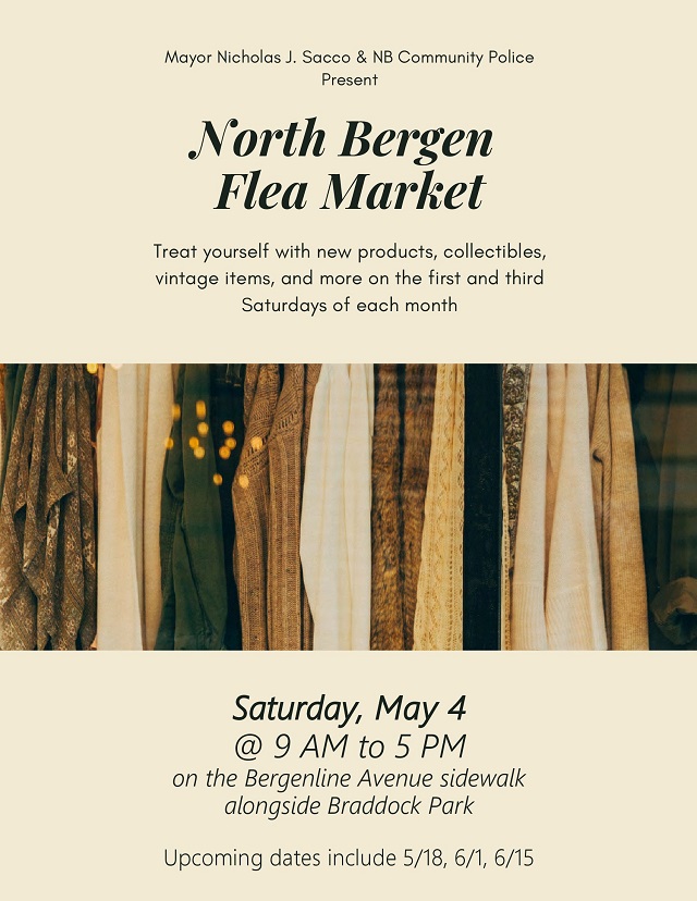 May 03, 2024The North Bergen Flea Market & Collectible Fair will return to Bergenline Avenue on Saturday, May 4 from 9 a.m. to 5 p.m. on the sidewalk stretching south from 90th Street alongside Braddock Park