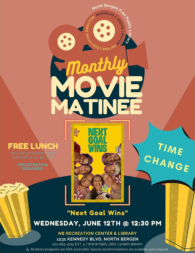 June 10, 2024The North Bergen Free Public Library’s monthly movie matinee is the 2023 comedy sports film “Next Goal Wins.”