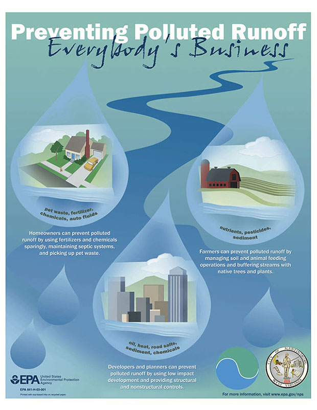 Human activity is largely responsible for the stormwater pollution. Everything that we put on the ground or into the storm drain can end up in our water. Each of us has a responsibility to make sure these contaminants stay out of our water. Whether we have clean water is up to us.